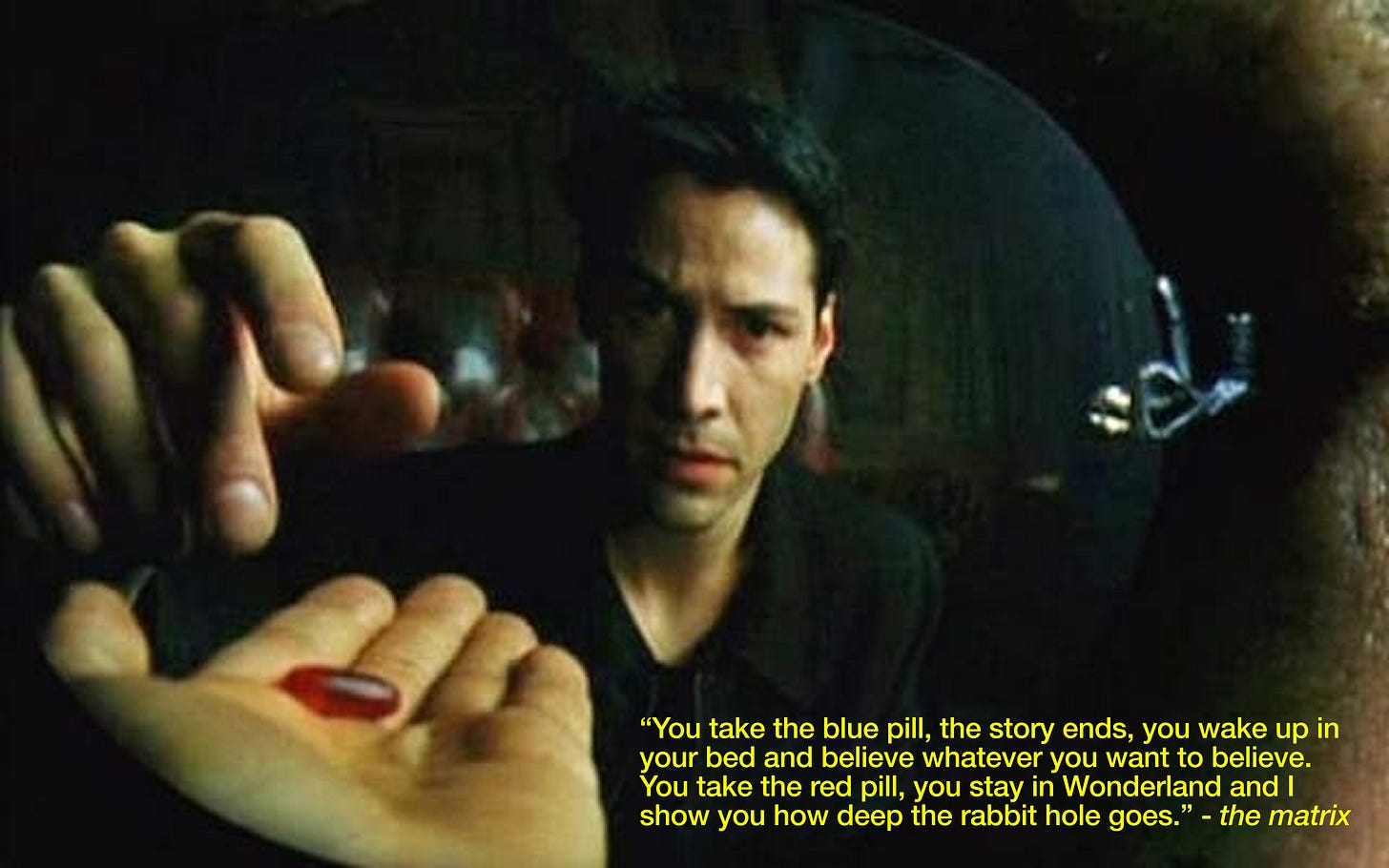 A scene from the 1999 film The Matrix inspired the name, in which Laurence Fishburne offers Keanu Reeves a choice: