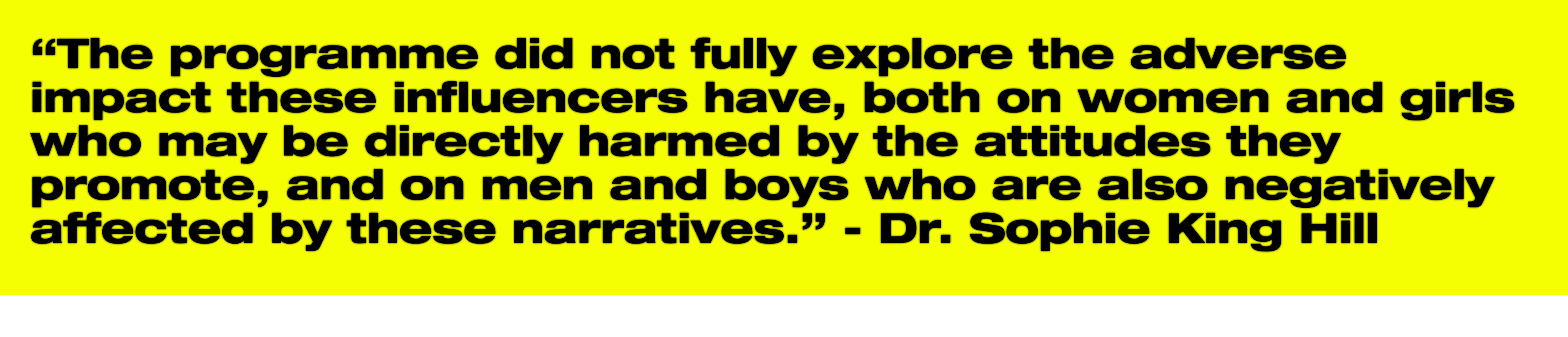 There is value in bringing the manosphere into mainstream conversation and the documentary does a good job in exposing just how lucrative misogyny has become, revealing the scale, strategy, and profit behind these creators. But how we frame it determines whether we challenge it or help sustain it.